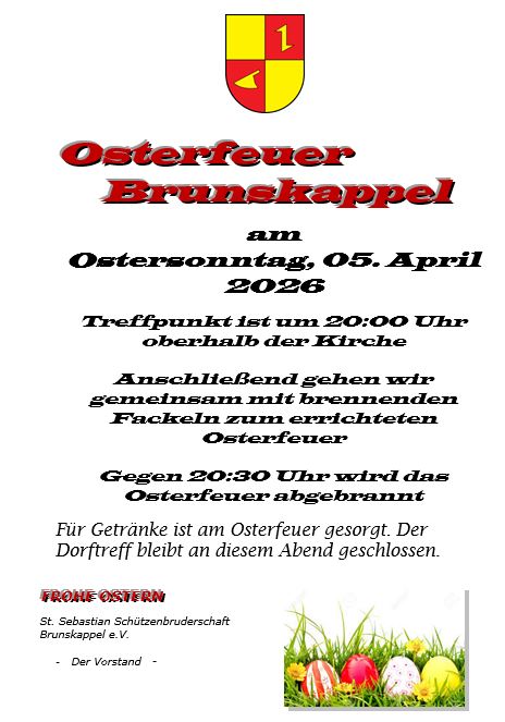 Die Schützenbruderschaft lädt wieder alle Brunskappeler und Gäste am Ostersonntag zum Abbrennen des Osterfeuers ein.