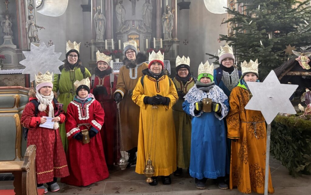 Bei strahlendem Sonnenschein, aber eisigen Temperaturen, fand heute die Sternsinger-Aktion 2026 statt. Trotz der Kälte machten sich 10 Kinder in 2 Gruppen als Sternsinger auf den Weg und zogen von Haus zu Haus um den Segen zu bringen und Spenden zu sammeln.